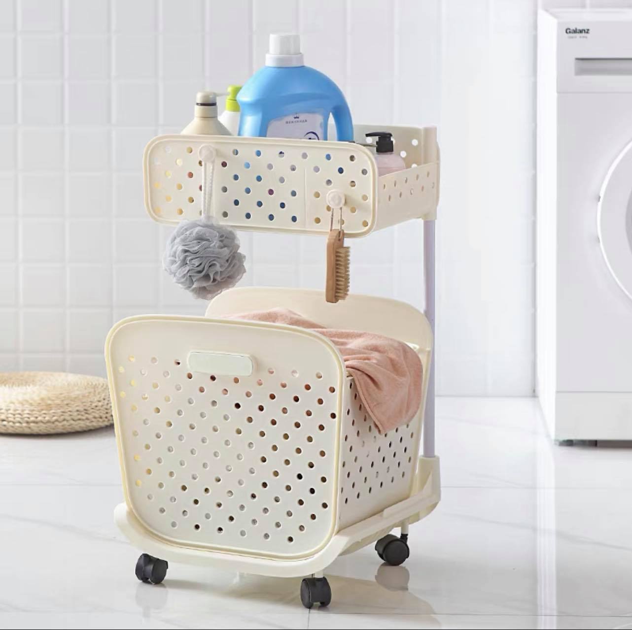 إليك سلة الغسيل للملابس المتسخة مصنوعة من بلاستيك عالي الجودة مقاوم للماء ,تحتوي على حجرتين بسعة تخزين عالية تكفي لكل ملابس عائلتك، يلبي الاحتياجات الأساسية للحياة اليومية ومثالي ببساطة لكل بيت. سلة متحركة بطابقين و أربع عجلات و بألوان مختلفة ترضي ادواقكم الراقية 🍭🍭